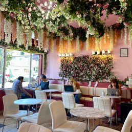 Cute little cafe with unique drinks and big selection of tasty pastries! I usually am not a fan of fake flowers, but Damask Rose managed to go so over the top it's a total vibe and I'm here for it! The place is small and very cute, came here on a weekday morning with no wait, staff was friendly and very helpful in my decision making on what treats to get to go with the rose latte.